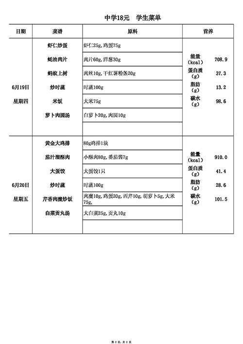 2024学年第二学期第十八周菜谱